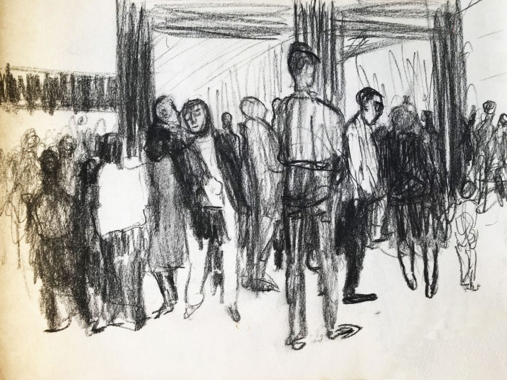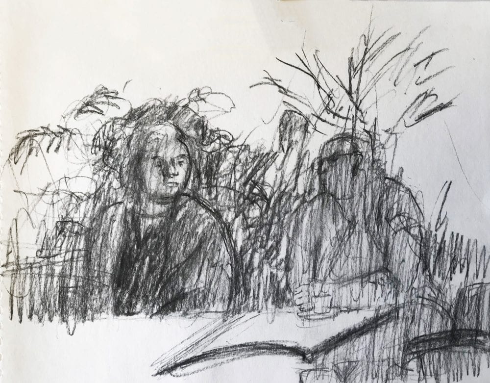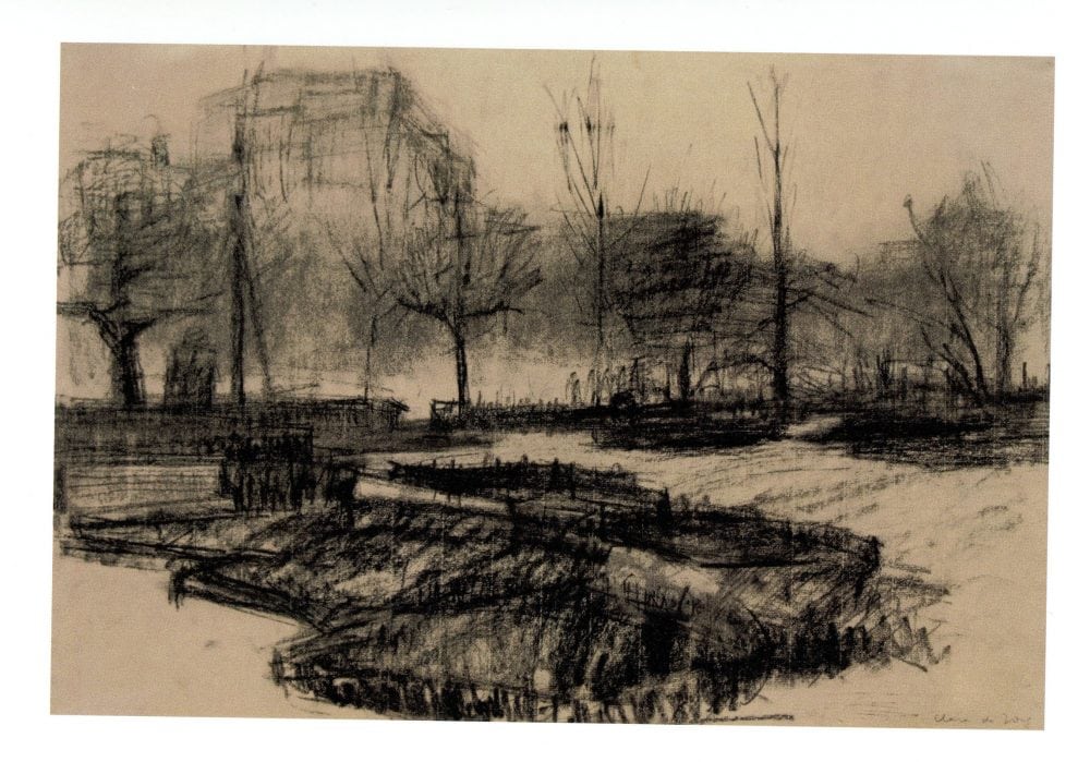 De tekeningen van het Vondelpark met de gelukkige en onbezorgde kant van het leven van destijds als kind, later als moeder van een stel kinderen.